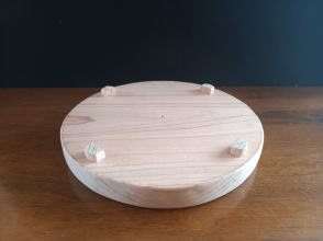 径22cm厚さ2.5cmの円盤に飾り彫りを入れて、サンドペーパーで仕上げました。