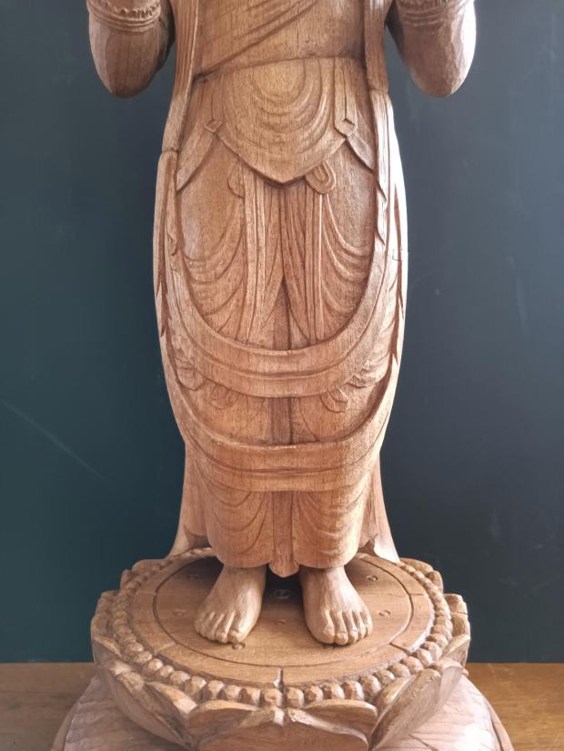 蓮台を乗せれば「蓮華座」として完成です。これまでの蓮華座とは趣きが異なります。下の反花の存在感がありますので、本像とのバランスから考えるとこれだけでいい気もします。下に「框座」を敷くとより安定感があると思いますがどうでしょうか。