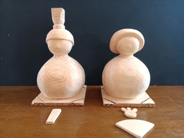 お内裏さまとお雛さまそれぞれの小物を彫りました。