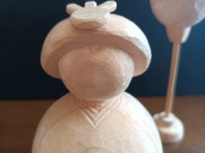 柄を台とぼんぼりに差し込んで完成ですが、その前にできるだけ滑らかに仕上げ彫りをします。今回はクラフトとして最後にサンドペーパーを掛けてから塗りをしたいと思います。